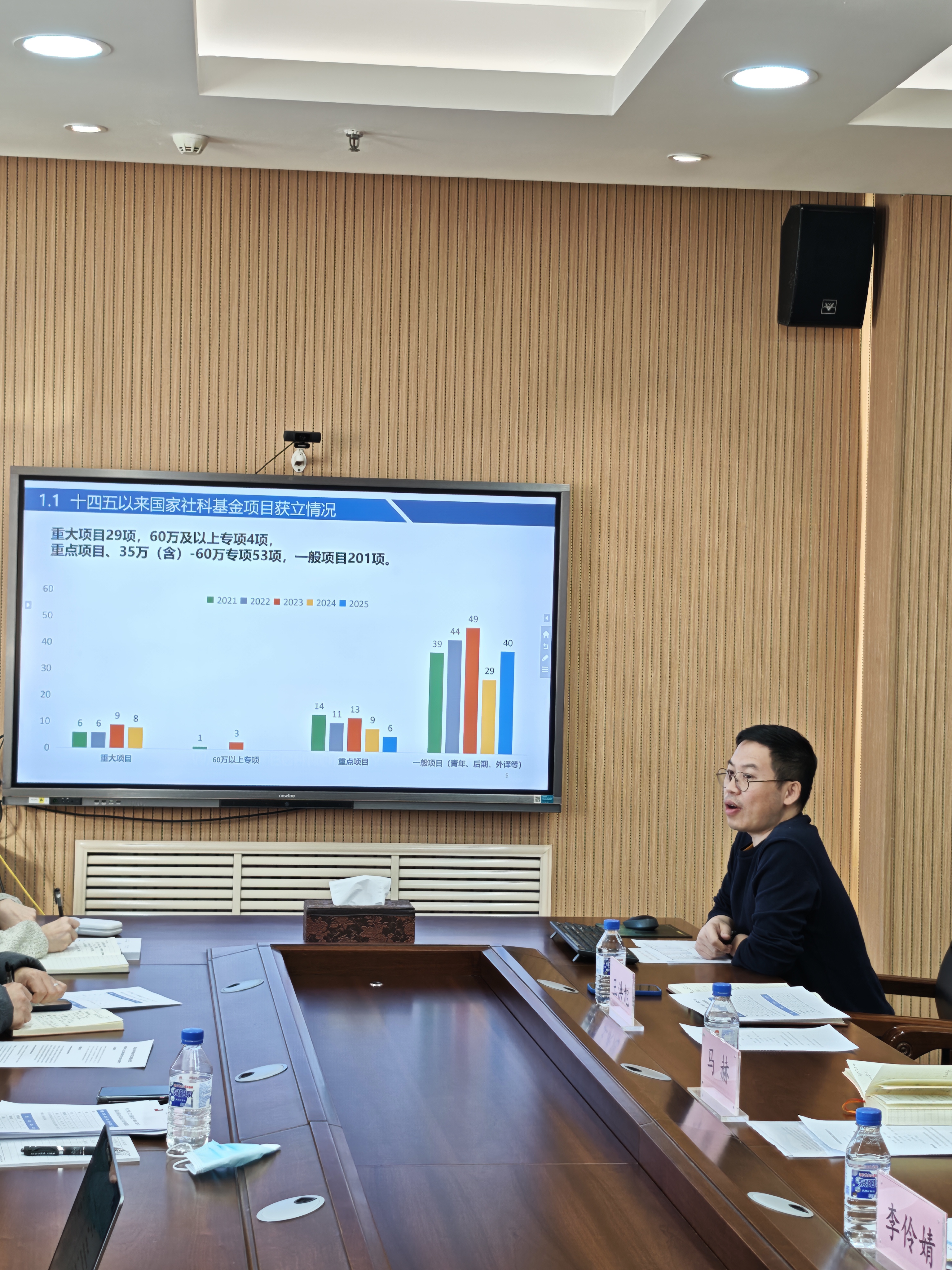 彭善国副院长感谢社会科做爱电影多年来对考古学科的大力支持,在申报项目工作中给予的多方面帮助,并结合做爱电影实际介绍做爱电影国家级项目在研、申报、结项过程中遇到的相关问题,在师资科研工作中面临的现实困难,表示我院一直高度重视国家社科基金的申报工作,2026年度已有10余人积极准备申报国家级项目。
