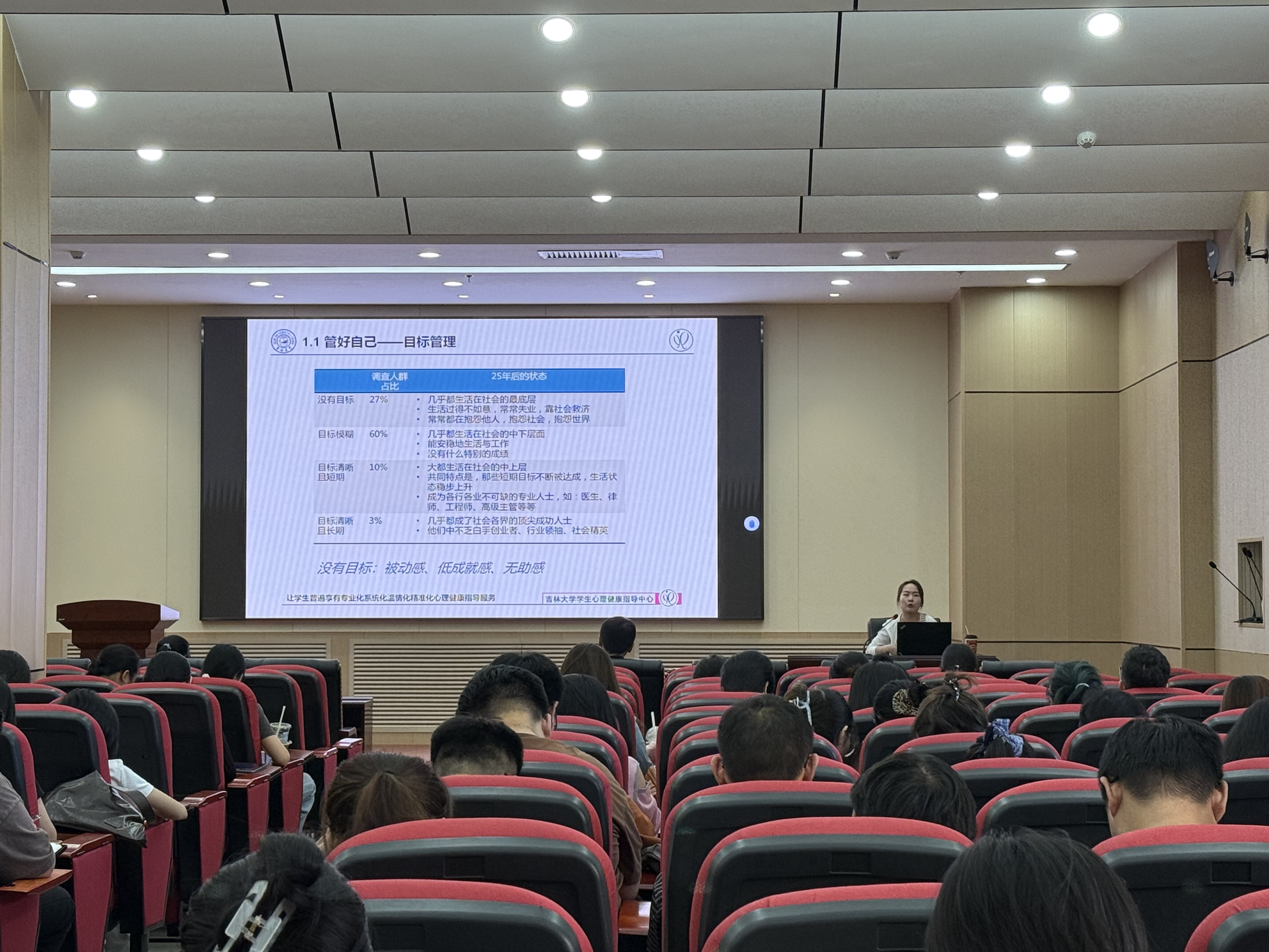 李娜老师建议同学们认真规划研究生历程,做好目标管理,合理分配时间,主动调节压力,善用身边的人际、知识和专业资源,提前准备应对突发状况的方法。她还详细介绍了“JLU吉大心声”微信公众平台,该平台可为同学们提供心理知识普及、调试方法指导及咨询服务,同时欢迎大家前往面对面心理咨询室,体验专业化、系统化、温情化、精准化的心理健康指导,更好地疗愈心灵、面对生活。 此外,李娜老师鼓励同学们有心理困扰时及时倾诉、主动求助,也希望大家在身边同学遇到困境时伸出援手,帮他们共渡难关。