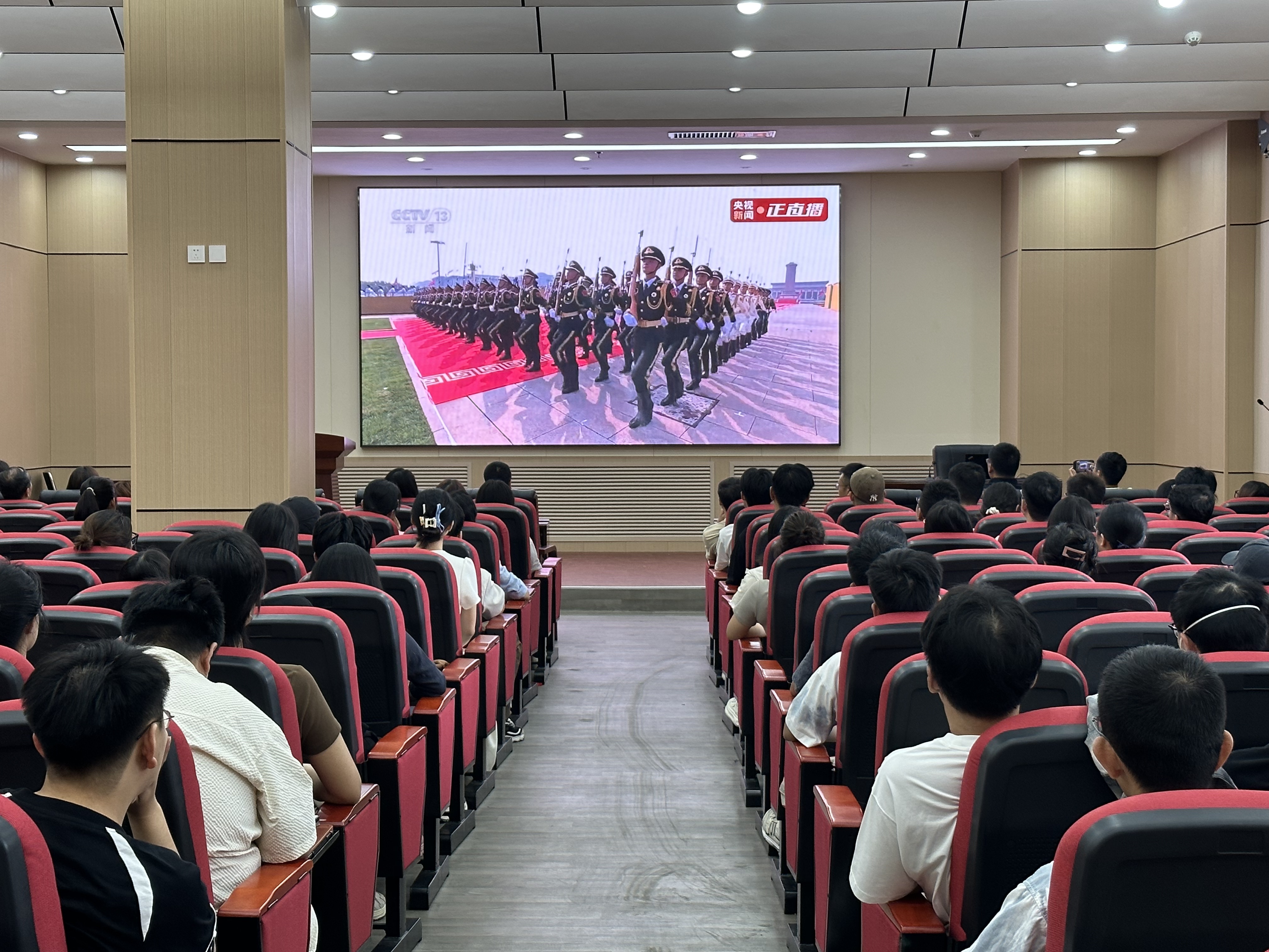 组织新生、学生党员集中收听收看纪念中国人民抗日战争暨世界反法西斯战争胜利80周年大会盛况,共同见证庄严而神圣的时刻。