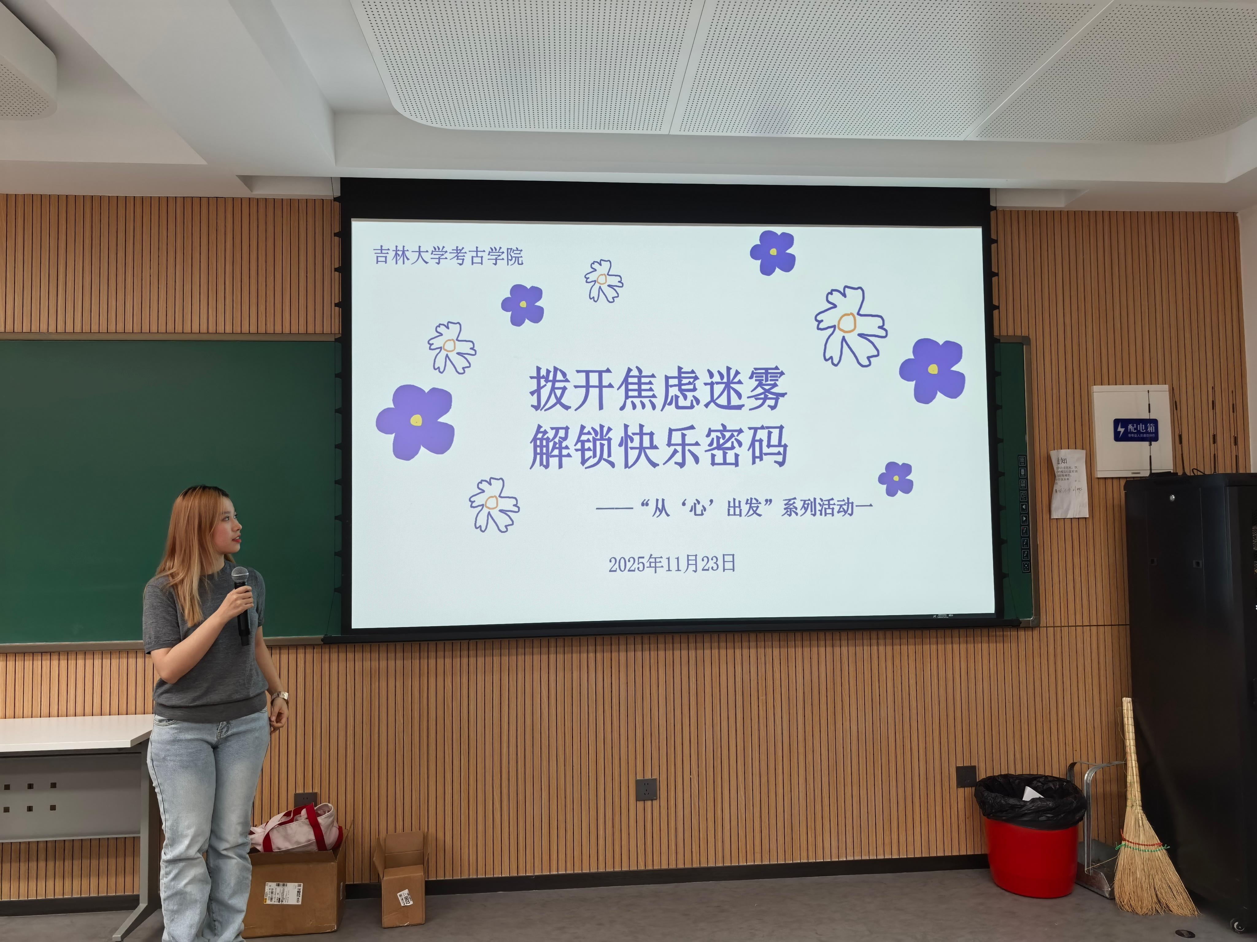 学生会心理健康部在敬信教学楼E区107教室成功举办“从心出发”第一期——“拨开焦虑迷雾,解锁快乐密码”心理健康主题活动。