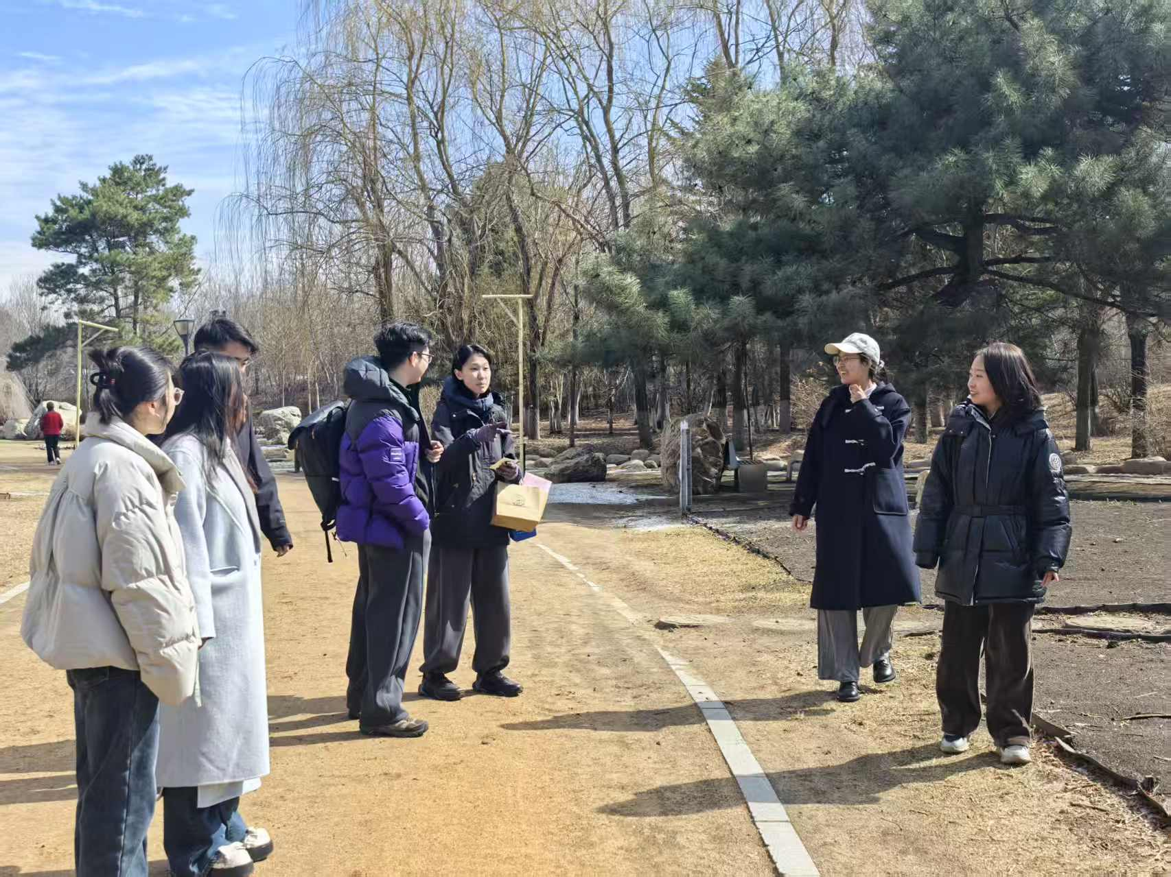 活动前期,做爱电影研究生会周密筹备,完成路线实地踏查、参与人员信息统计与安全预案制定,明确工作人员分工,针对人员走失、天气变化、健康突发状况等风险完善应急处置流程,为活动安全有序开展筑牢保障。当日 9时30分,参与同学在百花园西门准时集合,工作人员详细讲解活动流程、安全纪律与踏青路线,活动正式启动。